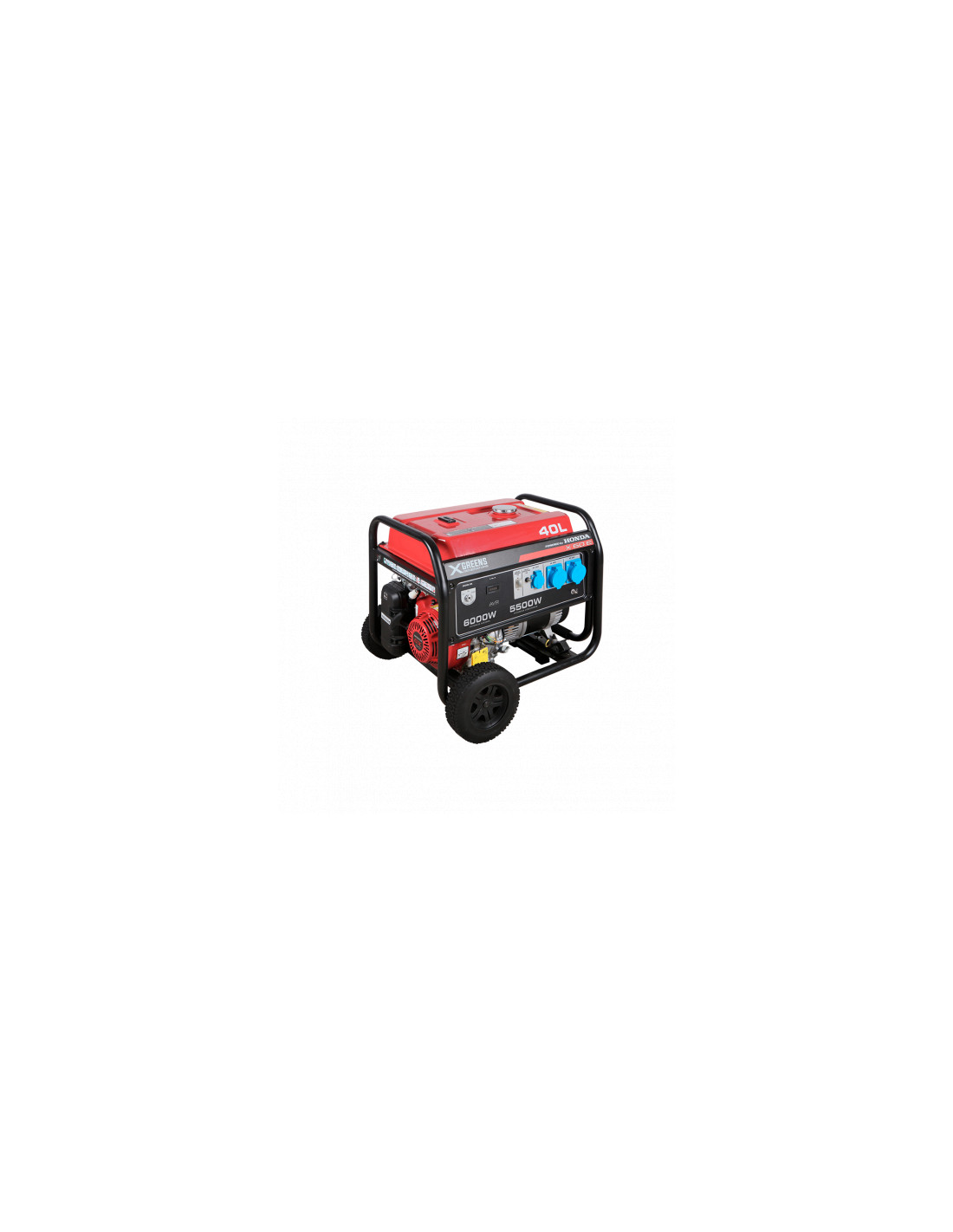 • Generador XGREENS™ monofásico polivalente X60E de 6 KVA (6000VA) con motor de arranque eléctrico Honda.